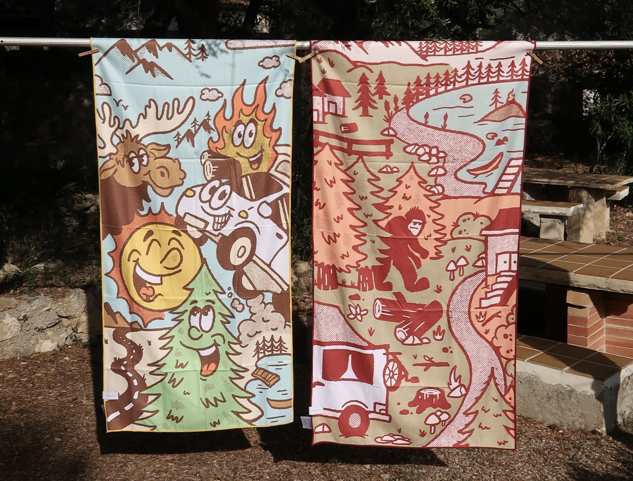 Limited edition reishanddoek ontworpen door cartoon illustrator