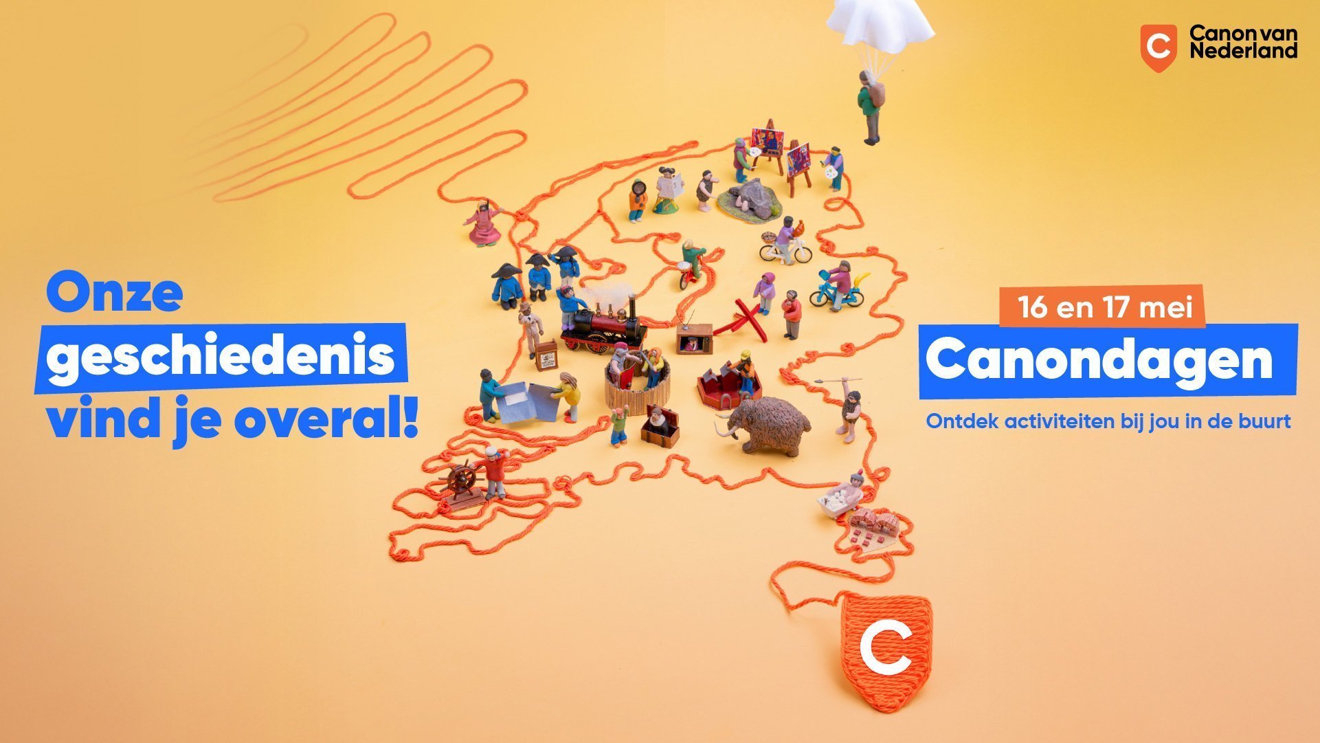 Onze geschiedenis vind je overal. Daarom brengen musea en instellingen door heel Nederland historische verhalen voor het voetlicht tijdens de Canondagen. Dat doen ze met allerlei publieksactiviteiten, van rondleiding en workshop tot kinderprogramma en quiz, die aansluiten bij de Canon van Nederland. De vijfde editie van de Canondagen vindt plaats op 16 en 17 mei. Ga voor alle activiteiten naar canondagen.nl.